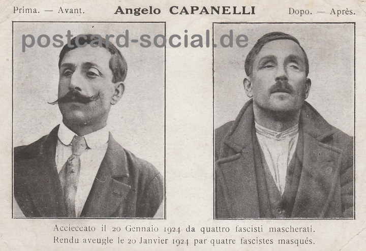 Gedenkkarte für den von italienischen Faschisten blind geschlagenen